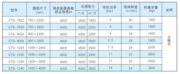 • CTG系列干選筒式磁選機是一種用于河沙提取鐵粉和碎粉狀貧礦富集而設計的高效磁選設備。還可根據(jù)用戶需求設計生產各種干選成套設備。
